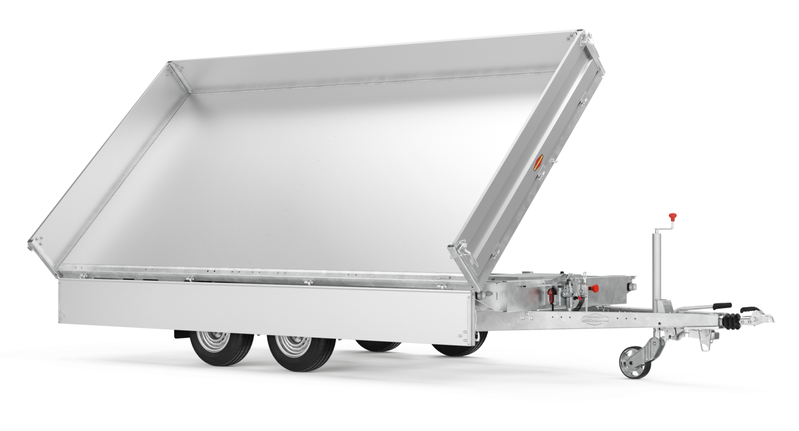 De driewegkipper DK-AL 4124/35 P zijn voertuigen van absolute professionele kwaliteit en uitrusting. Zij maken indruk met een solide en robuuste constructie, een indrukwekkende kantelhoek van 45 ° en een verzonken spanbeugelsysteem. De mechanische afdichting op de hoekrongen en de 350 mm aluminium boordwanden zorgen voor veilig transport. De staalplaatvloer op de zeefdruk basisplaat en haakse hendelsloten maken deze voertuigen betrouwbare dagelijkse begeleiders. De standaard DK-AL 4124/35 P is een van de veiligste kippers op de markt - omdat de e-hydraulica standaard is, net zoals de eenvoudige en CE-conforme noodstop.