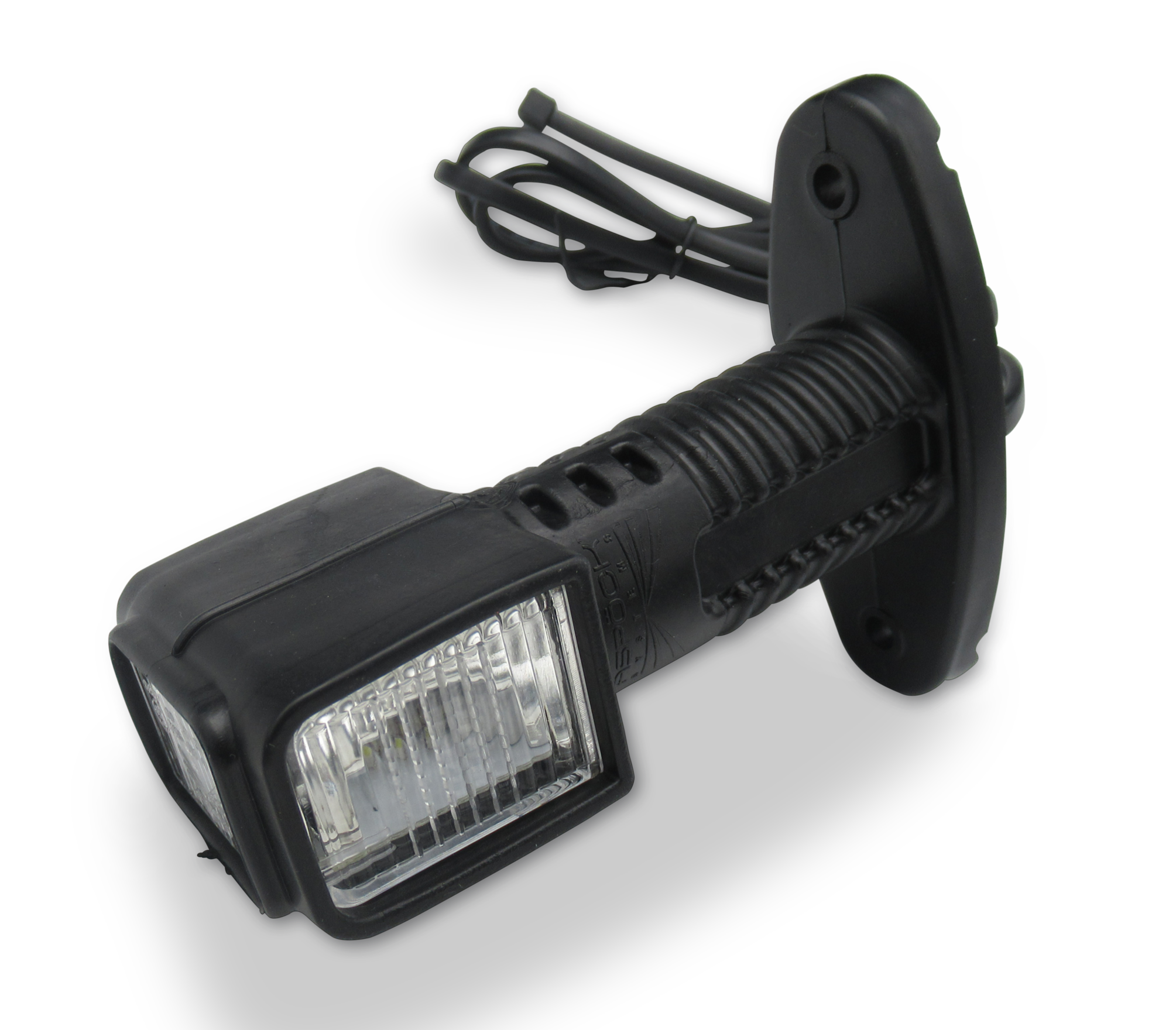 De omtreklamp Superpoint IV met korte voet wordt aan de linkerkant van onze aanhangwagens in rijrichting gemonteerd en is ontworpen voor 12 volt.